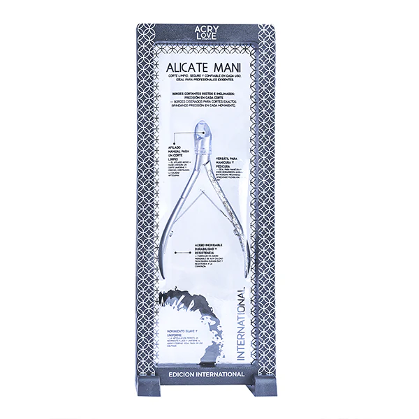 La Alicata Mani International de Acry Love permite realizar cortes precisos y controlados en cada aplicación. Su diseño facilita el manejo, ayudando a trabajar con mayor seguridad y detalle. Ideal para quienes buscan una herramienta confiable en manicura, ofreciendo resultados más limpios y definidos que mejoran la calidad del trabajo realizado.