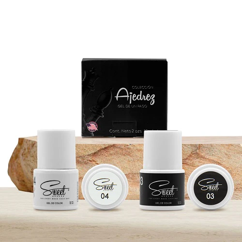 Transforma tus uñas con la Colección Gel Sweet Ajedrez, una línea innovadora que combina la elegancia clásica del ajedrez con tonos modernos y vibrantes. Esta colección de geles ofrece colores intensos y texturas que permiten crear diseños de uñas sofisticados, desde los tradicionales cuadros en blanco y negro hasta combinaciones más atrevidas y originales.