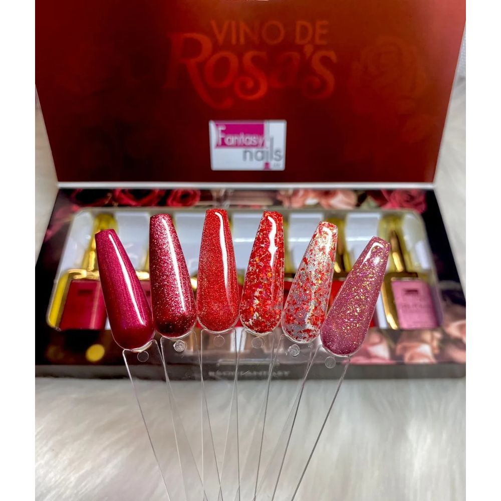 La Colección Vino de Rosas Fantasy Nails ofrece tonos vino profundos y elegantes, perfectos para diseños sofisticados y románticos. Ideal para manicure profesional sobre gel semipermanente y uñas naturales, permite crear degradados, detalles precisos y combinaciones llamativas. Garantiza alta pigmentación, cobertura uniforme y resultados duraderos con acabados refinados y de alta calidad en salón.