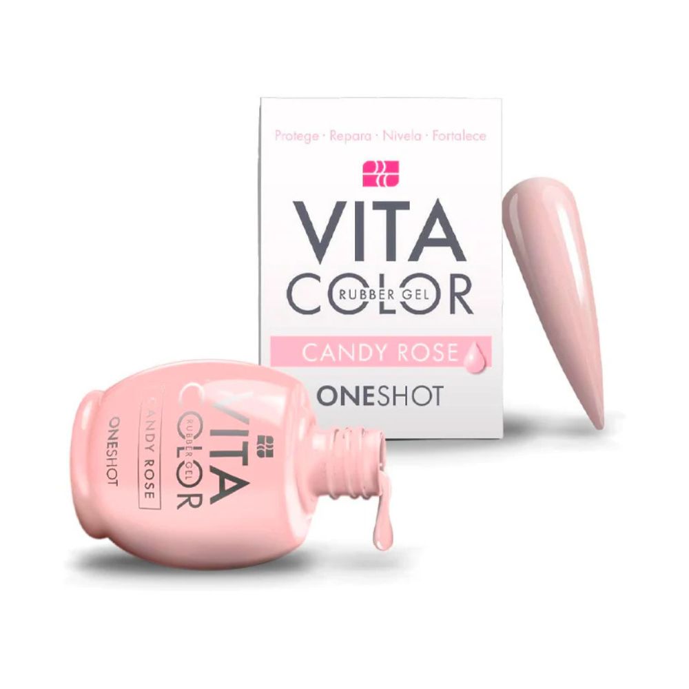One Shot Vita Color Candy Rose es un gel tipo rubber que ayuda a nivelar, fortalecer y proteger la uña natural. Su fórmula mejora la apariencia de la uña mientras corrige imperfecciones. Ideal para manicure profesional, permite crear estructura ligera y extensiones cortas con acabado natural y duradero.