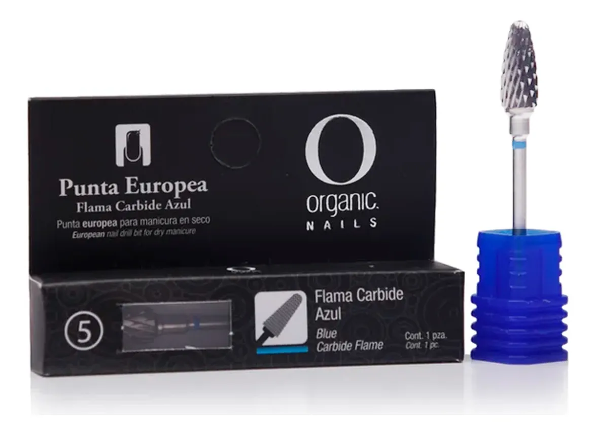 Punta profesional de carburo con forma flama, ideal para técnica rusa y manicura europea.